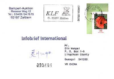 Auslandspostsendung Sonderpost-gebühr: Postsendung im grenzüberschreit-enden Verkehr die zu einer reduzierten Auslandspostgebühr befördert wurde (z. B. 1,80 anstatt 2,40 Mark) |