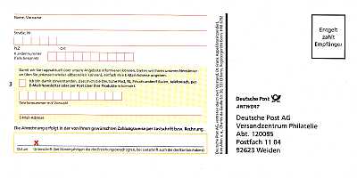 Collector´s Shipment: postal shipment that primarily serves philatelic purposes (e.g. send-ing cancelled postage stamps) |