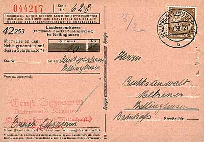 Giro Card: former special transfer form that also served as a credit note for the recipient |