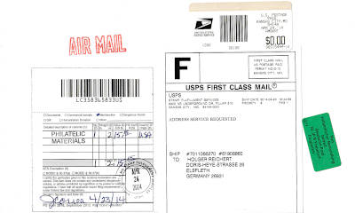 Stamp Dealer Shipment: postal shipment that was posted (often in larger quantities) by a stamp dealer (e.g. production of can-celled postage stamps) |