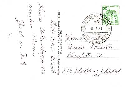 Postbeförderung: Übermittlung einer Nachricht die an einen Gegenstand gebunden ist (z. B. Brief, Postkarte)