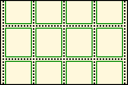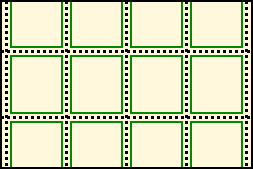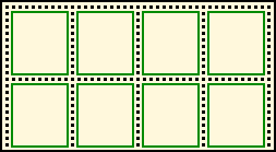 Kastenzähnung: alle Briefmarken eines Bogens werden auf allen vier Seiten gleich-zeitig gezähnt (Bogenzähnung) |