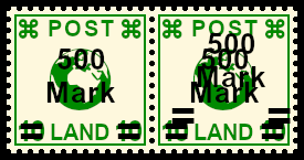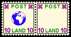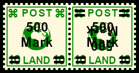 Se-tenant with single and double postage stamp over-print: sheet part one postage stamp with once and the other with twice postage stamp over-print caused by error