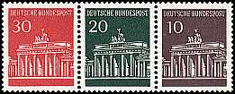 Strip of three: sheet part with 3 the same or different postage stamps connected in a line