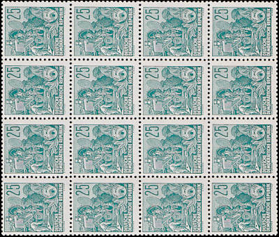 Block of sixteen: sheet part with 16 the same or different postage stamps
