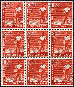 Block of nine: sheet part with 9 the same or different postage stamps